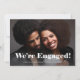 Diese einfache und moderne Einladung zur Verlobungsfeier beinhaltet zwei Ihrer liebsten persönlichen Fotos, mit fett weißer Typografie, die "wir sind verlobt" auf der Vorderseite und weiteren Details auf der Rückseite.