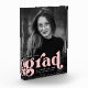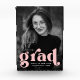 Stilvolle Abschluss-Foto-Block mit dem senkrechten Foto des Absolventen mit "grad" in fett rot rosa Schrift. Personalisieren Sie den Foto-Block, indem Sie den Namen des Absolventen, das Jahr des Abschlusses und die Schule hinzufügen.