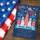 Célébrez l'Amérique, votre famille et vos amis en lançant un BBQ ou une fête du quatrième juillet ! Ce design présente une illustration moderne d'une ville avec des feux d'artifice dans le ciel, des couleurs rouge, blanc et bleu. Page de couverture maquette fournie par Freepik.