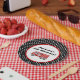 Roter und schwarzer Geburtstags-Party-Papier-Teller des Feuer-LKWs themed.