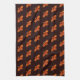 Ein glühender, feuriger Rabe (Corvus corax) bläst auf, die Flügel sind ausgebreitet und auf einem dunklen Hintergrund gekachelt.