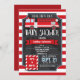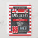 Das ist ein Junge! Niedliche, lustige und lustige Babydusche zum Thema Feuer auf eleganten, roten und weißen Streifen. Der LKW ist rot, weiß und grau. Großes Jahr für Frühling, Sommer, Herbst oder Winter Feuerwehrmann, Feuerwehrauto, Feuerwehrfahrzeug, Feuerwehrwagen, Feuerwehrbabwuchduschen.