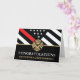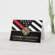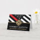 Dieses Design verfügt über eine Feuerwehrflagge mit schwarz-weißen Streifen und einen dünnen roten Streifen. "Glückwunsch" und das Abzeichen eines Feuerwehrmanns sitzen über dem Namen des geschlossen Feuerwehrmanns. Feiern Sie stilvoll!