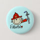 Wenn Ihr Beruf der eines Feuerwehrmanns ist, werden Sie Liebe dieser bunte Feuerwehrmannknopf, der einen männlichen Strichmännchenfeuerkämpfer und -text, der, kennzeichnet "Feuerwehrmann" auf einem blauen Hintergrund liest.
