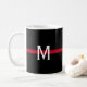 Diese Tasse ist zu Ehren der Feuerwehrleute mit einem horizontalen roten Streifen auf schwarzem Hintergrund und einem Monogramm in weiß, das für Sie personalisiert.