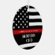 Personalisiertes Thin Red Line Ornament - Amerikanische Flagge in Firefighter Flag Farben, modernes schwarz rotes Design. Personalisieren Sie Ihre Daten mit dem Namen des Feuerwehrmanns oder der Feuerwehr. Dieses personalisierte Feuerwehrschmuck eignet sich hervorragend für Feuerwehr, Feuerwehr oder als Denkmalpflege und Feuerwehr Weihnachtsgeschenke oder kleine Geschenke. Bestellen Sie diese Feuerwehrschmuck Großhandel für Geschenke der Feuerakademie oder Feuerwehr, Feuerwehrfeuertreuen kleine Geschenke. COPYRIGHT © 2020 Judy Burrows, Black Dog Art - Alle Rechte vorbehalten. Feuerwehrmann Personalisierter Feuerwehrmann Rot Linie Metallverzierung