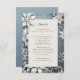 Carte de détails du feuillage d'hiver bleu pimenté, avec un arrière - plan bleu glacé et délicat feuillage d'hiver blanc et croustillant.
