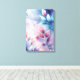 Cette œuvre d'art verticale à couper le souffle capture l'essence délicate de la nature à travers un beau médium aquarelle. L'œuvre présente des branches botaniques gracieusement représentées avec des feuilles peintes dans des tons doux et frais de lavande, de bleu poussiéreux et de rose saumon. Le fond est un lavis rêveur de couleurs mélangées, créant une atmosphère légère, aérienne et éthérée. Cette pièce est parfaite pour ajouter une touche de sophistication tranquille et de couleur délicate à un espace de vie lumineux ou à une retraite de chambre sereine.