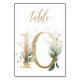 Belle carte de numéro de table avec un motif botanique - une illustration aquarelle de feuilles vertes et dorées. Table 10. Veuillez vérifier tous les numéros disponibles