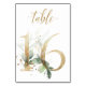 Belle carte de numéro de table avec un motif botanique - une illustration aquarelle de feuilles vertes et or. Table 16. Veuillez vérifier tous les numéros disponibles