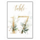 Belle carte de numéro de table avec un motif botanique - une illustration aquarelle de feuilles vertes et or. Table 17. Veuillez vérifier tous les numéros disponibles