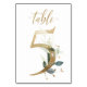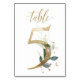 Belle carte de numéro de table avec un motif botanique - une illustration aquarelle de feuilles vertes et dorées. Table 5. Veuillez vérifier tous les numéros disponibles