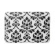 Vintag beeinflusste, grüne, barocke Struktur Damast Oberflächenmuster Design in schwarzem Blatt und blühte Details auf weißem Hintergrund.