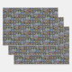 Ces feuilles de papier d'emballage alien ont un motif de pull basé sur le thème classique Fair Isle tricoté modèles. Le motif est de cercles gris et noirs et de bandes de diamants. Chaque forme a des motifs aliens mignons rétro différents. Vous avez un mignon robot rétro, un enlèvement d'ovni, un vaisseau spatial avec un alien vert, une tête d'alien gris, un système solaire, un plante alien, un pistolet à rayons rétro et un chasseur étoilé. Entre les motifs se trouvent les lunes, et les étoiles.
