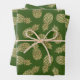 Trois feuilles de papier d'emballage présentent des ananas en or sur un arrière - plan vert (ou toute couleur que vous choisissez). PLUS de couleurs dans notre magasin.