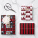 Feuilles d'emballage rustiques, parfaites pour Noël, avec trois motifs différents en rouge et noir. Stripes, chevalet de buffle et photo d'animal de compagnie personnalisée - parfait pour votre(vos) chien(s).