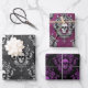 Feuille De Papier Cadeau Crâne gothique gris et mauve