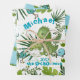Wrap your gifts in a roar-some style with this personalized flat sheet of wrapping paper! Part of our popular watercolor dinosaur collection, these wrapping paper sheets feature a fun and vibrant pattern. The first design includes a mommy and baby dino, tropical leaves, and little dino friends. It's customized with the baby's name, "Michael," and the year. The best part? The text "the Dino-Mite" can be easily changed to suit any occasion, whether it's "Happy Birthday," "1st birthday," "is turning one," "Baby Shower," or "1st Christmas." This wrapping paper is a perfect way to make any gift extra special. Each sheet measures approximately 19 x 29 inches (48 x 73 cm).