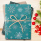 Ces trois feuilles de papier d'emballage présentent des flocons de neige argentés sur un arrière - plan de rose turquoise, bleu foncé et poussiéreux.