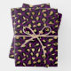 Feuille De Papier Cadeau Empreinte de léopard pourpre et or