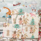 Le premier papier cadeau de Noël d'une petite fille avec un arbre de Noël aquarellé, des blocs en lettres, des poupées vintages, des nounours rouges et des sucres de canne dans un ensemble de trois feuilles de la même image.