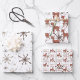 Ces papiers d'emballage ont un motif arrière - plan de flocons de neige de couleur or. Le deuxième design a une couche supérieure de rennes et le troisième design a une étiquette superposée avec deux rennes et le texte qui dit "Joyeuses fêtes".