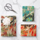 Feuille De Papier Cadeau FLEURS JAPONAISES ANCIENNES Rouge Turquoise Vert F