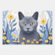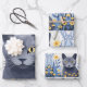 Feuille De Papier Cadeau Fleurs Jaunes Chat Bleu Russe