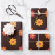 Feuille De Papier Cadeau Fleurs rouges super rétro orange jaune