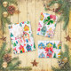 De jolies maisons de Noël qui sont si festives et colorées décorent ces feuilles de papier d'emballage. Ils forment des scènes amusantes de ruelles viticoles de petites maisons dans la neige blanche, mélangées avec des arbres décorés au sommet d'étoiles. Les motifs d'aquarelle ont une origine rétro, si populaire aujourd'hui. Chacun des trois papiers a une scène différente, qui fonctionne très bien ensemble ou individuellement.