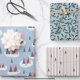 Les lignes épurées et les couleurs contemporaines des lignes épurées sont nostalgiques et colorées. Les décors comprennent des arbres modernes sur des monticules de neige, un feuillage avec des arbres et une spring classique. Les couleurs sont le bleu, le rose, le vert et le blanc.