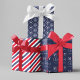 Ce design comprend Noël Fête bleu marine, Flamme de neige de Noël motif, simple minimaliste festif, bleu marine couleurs nautiques rouges, script de calligraphie moderne police, texte de typographie design tendance, nom de famille de la personnaliser personnalisée, emballage cadeau de Noël, fournitures d'emballage cadeau de Noël, Noël traditionnel hiver, papier de Noël nautique côtier
