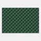 Feuilles d'emballage rustiques, parfaites pour les fêtes de Noël et de célibataire et les anniversaires, avec trois motifs assortis en noir et vert : plaid, cerfs et pins.