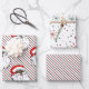 Célébrez la saison des Fêtes avec du papier d'emballage noir du Père Noël, complété par un papier d'emballage enneigé et rayé.