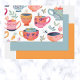 Ce joli ensemble de feuilles d'emballage présente une illustration de tasses à thé et de feuilles et deux couleurs solides tirées de l'illustration. Profitez de vos nouvelles tasses à thé enveloppant des feuilles de papier!
