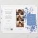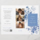 Faites votre journée de mariage de façon unique avec notre programme triplé personnalisé et élégant de toile à fleurs bleues. Il y a un élément do-it-yourself à ce produit - vous devrez le plier vous-même dans un style brochure. Il comprend des informations sur la fête de mariage, le calendrier de l'événement, l'ordre de la cérémonie, la réception, en mémoire d'amour, et les remerciements du couple. Ce programme élégant est facile à éditer et a imprimé directement sur Zazzle, vous permettant de créer un ajout élégant et mémorable à votre journée spéciale!