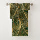 Dessin feuille d'or de luxe moderne, rempli de parties scintillant d'or brillant d'or brillant main feuille plante dessiné à la tropicale, créant un inhabituel feuille d'or exotique feuillage motif extraordinaire d'art tropique, sur un look velouté branché arrière - plan de couleur vert de forêt. Art contemporain chic et élégant, or jaune et couleurs vert émeraude peignent l'empreinte photo de la nature.