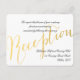 Élégant Glamour de Feuille d'Or | Cartons d'invitation de réception de mariage - Disposition horizontale. Conception de Elke Clarke©. D'autres styles et couleurs sont disponibles dans notre boutique www.zazzle.com/monogramgallery. Un simple script manuscrit avec le mot "reception" orne cette carte d'insertion de réception de mariage classique, mais moderne. Le texte est entièrement personnalisable. Le motif rayé or et blanc au dos peut être supprimé ou une couleur ou un motif différent peut être demandé. Livré avec une enveloppe blanche vierge. La feuille d'or est un effet de photo imprimé.