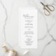 Ce programme de mariage minimaliste gris foncé feuille est parfait pour un mariage élégant. Le design se compose d'une simple silhouette verte en gris charbon de bois, au style minimaliste classique. Inclure le nom de la mariée et du marié, la date et le lieu du mariage, le message de remerciement, l'ordre de service, la fête de la mariée et un mémorial optionnel "en mémoire d'amour".