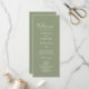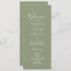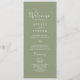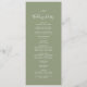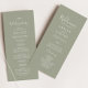Ce programme minimal de mariage vert sauge feuille est parfait pour un mariage boho. Le design se compose d'une simple silhouette de feuilles verdoyantes dans une couleur verte poussiéreuse avec un style minimaliste de boho de montagne. Inclure le nom du couple, la date et l'emplacement du mariage, le message de remerciement, l'ordre de service, la fête de mariage et un mémorial optionnel "en mémoire d'amour".