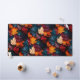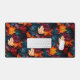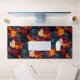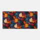 Ce tapis de bureau a des feuilles d'automne dessus.