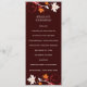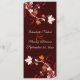 Feuilles d'automne orange rouge blanc brun mariage carte de programme de la crérémonie, avec de beaux feuilles d'érable rouge, orange et blanc d'automne couleurs et tourbillons gracieux sur arrière - plan brun. Une invitation élégante et moderne, parfaite pour un mariage de automne traditionnel ou contemporain.