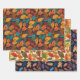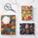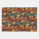 Un ensemble de trois feuilles de papier d'emballage cadeau, modelées avec des feuilles d'automne dans des couleurs saisonnières variables. Ces jolies créations sont idéales pour les anniversaires, Thanksgiving ou toute occasion à l'automne.