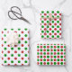 Une feuille de papier d'emballage de Noël avec des motifs de point et de polka en rouge et vert sur un arrière - plan blanc. Customisez le arrière - plan blanc, la taille des motifs entre autres options.