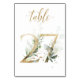 Belle carte de numéro de table avec un motif botanique - une illustration aquarelle de feuilles vertes et dorées. Table 27. Veuillez vérifier tous les numéros disponibles