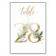 Belle carte de numéro de table avec un motif botanique - une illustration aquarelle de feuilles vertes et dorées. Table 28. Veuillez vérifier tous les numéros disponibles