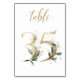 Belle carte de numéro de table avec un motif botanique - une illustration aquarelle de feuilles vertes et dorées. Table 35. Veuillez vérifier tous les numéros disponibles