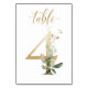 Belle carte de numéro de table avec un motif botanique - une illustration aquarelle de feuilles vertes et dorées. Table 4. Veuillez vérifier tous les numéros disponibles