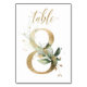 Belle carte de numéro de table avec un motif botanique - une illustration aquarelle de feuilles vertes et dorées. Table 8. Veuillez vérifier tous les numéros disponibles