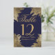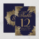Feuilles d'or sur numéros de table bleu marine